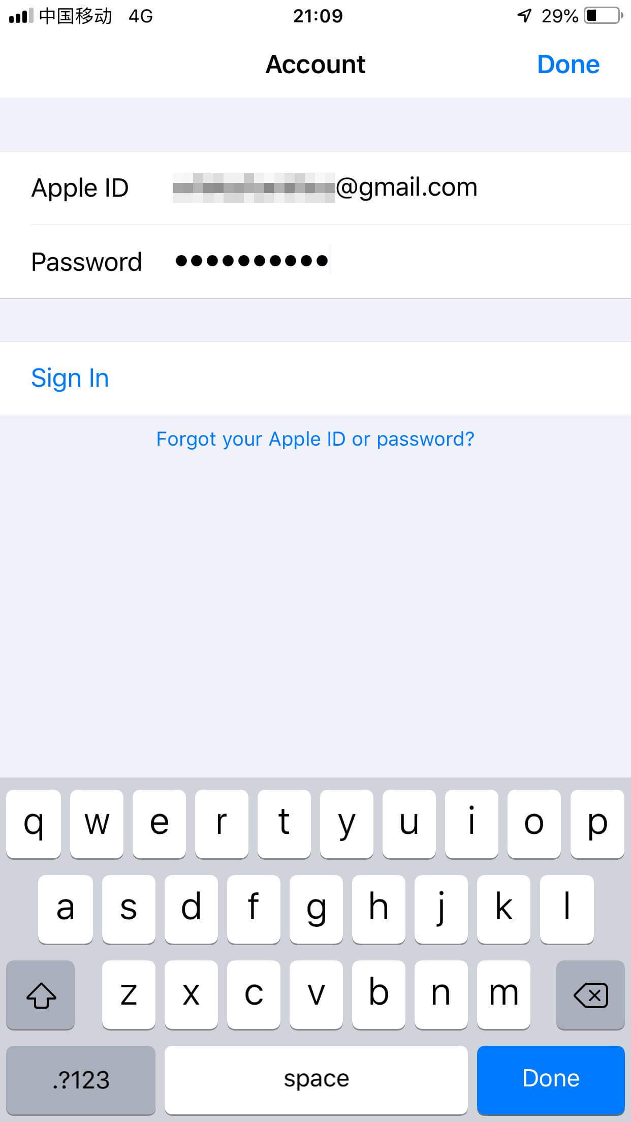 退出现有账户,输入新注册的美区 Apple ID 账户及密码,并点击 Sign In 登录: