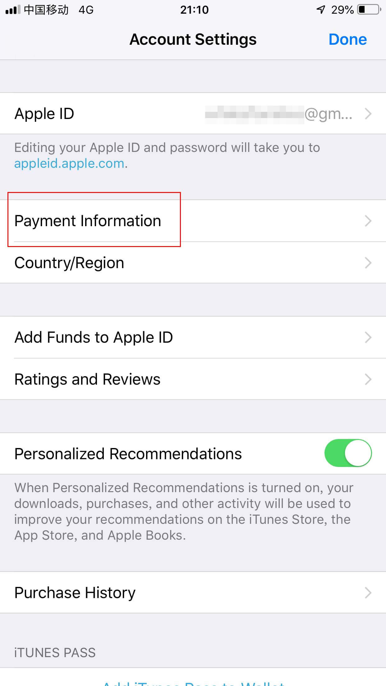 进入 Account Setting 界面,点击 Payment Information,进入付款方式设置页面: