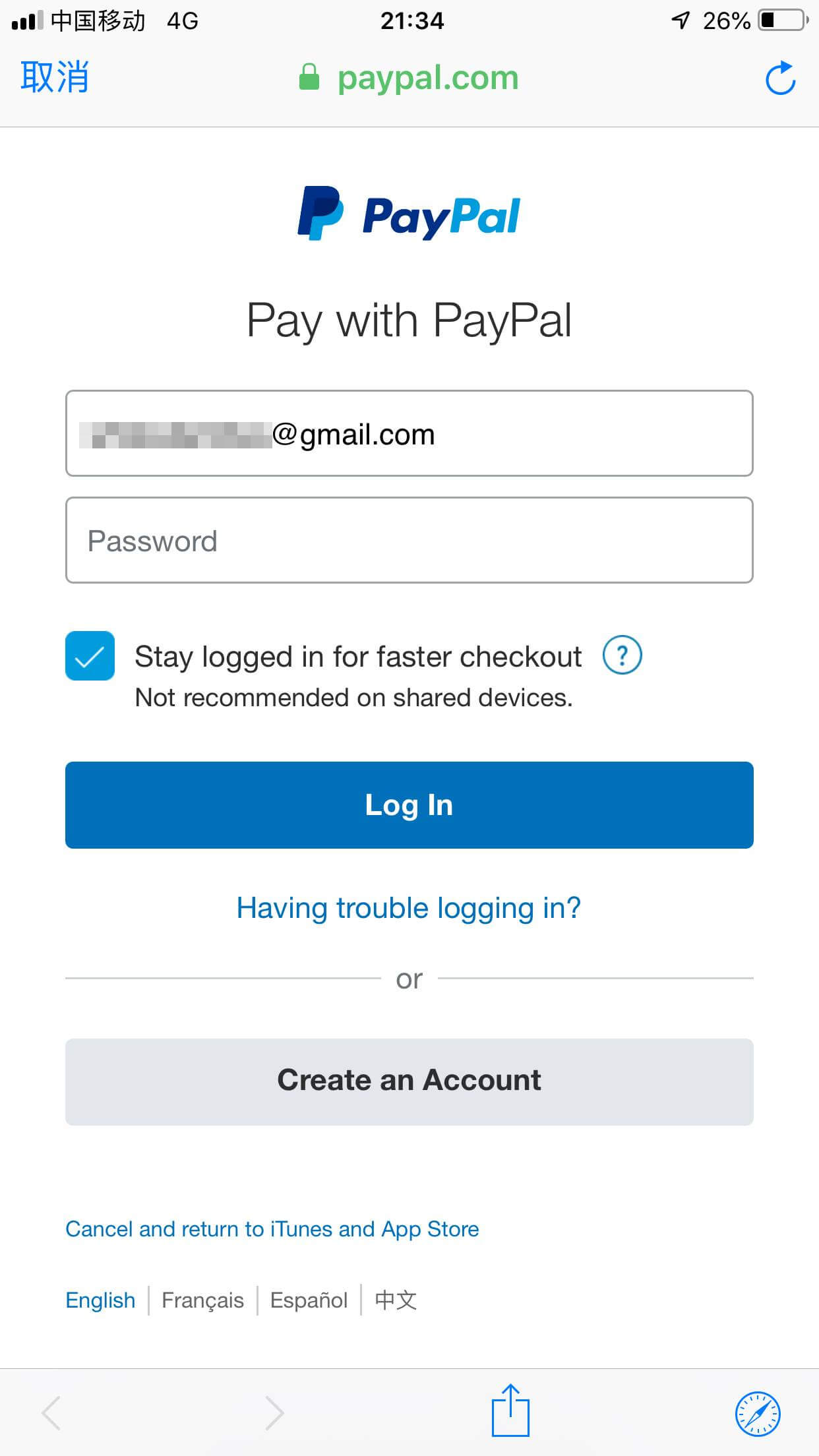 选择 PayPal,并点击 Log In to PayPal: