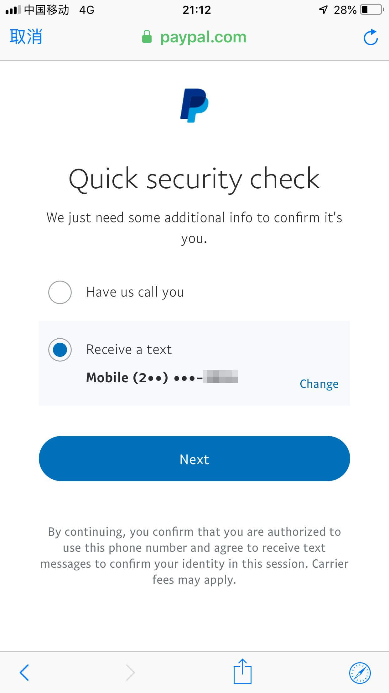 点击下载 App,会弹出指纹确认,指纹确认后,会显示 PayPal 号码的验证(验证也可能不会出现),示意图如下:
