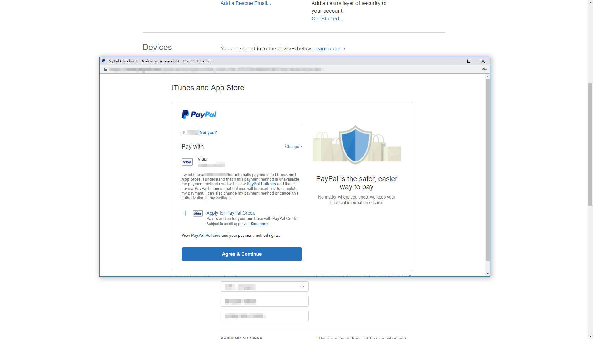 此时会弹出一个窗口,再次登录你的 PayPal 账户,直接进行安全检查。安全检查结束后,哈哈,成功显示付款信息页面。(如果在这里还是被风控了,那么说明与在线客服聊天并解除风控的办法已失效,我暂时没有其他办法了)