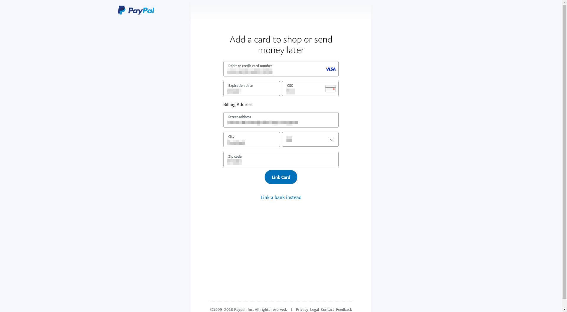 填写卡的相关信息,并点击 Link Card:
