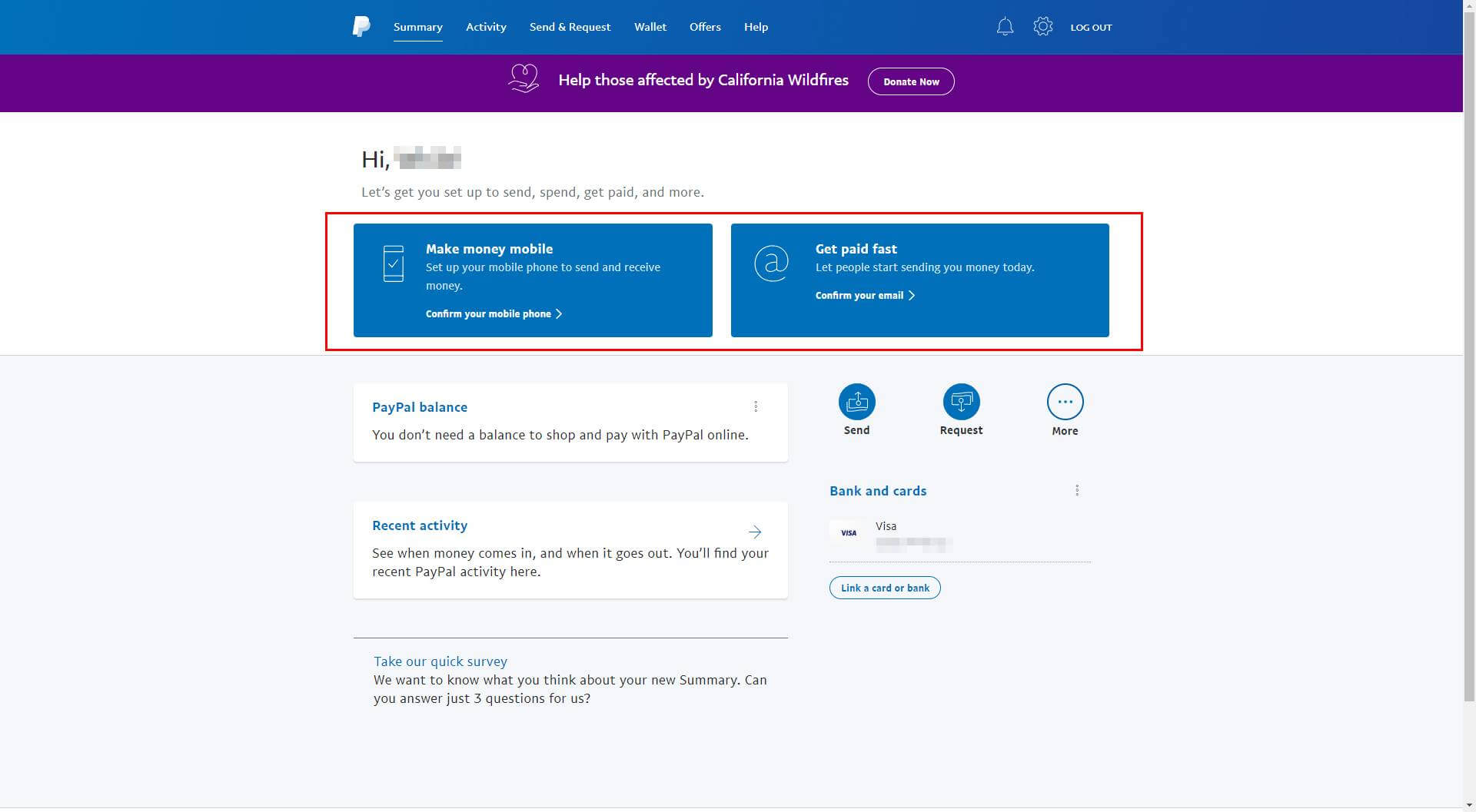 进入 PayPal 后台首页,请一定要验证你 PayPal 填写的电话和邮箱,不然 100% 风控!!!