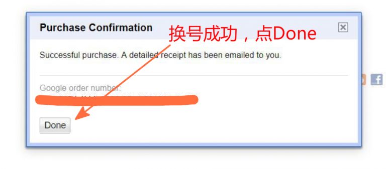 支付成功后,换号成功,点 Done:
