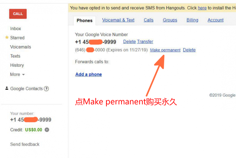 现在,只要花 30 美元,将 Google Voice 购买为永久(permanent)号,就不用担心被回收了。下面就开始看看如何操作: