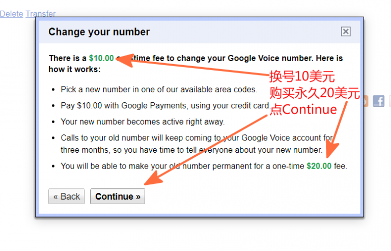 换号 10 美元,购买永久 20 美元,点 Continue 继续: