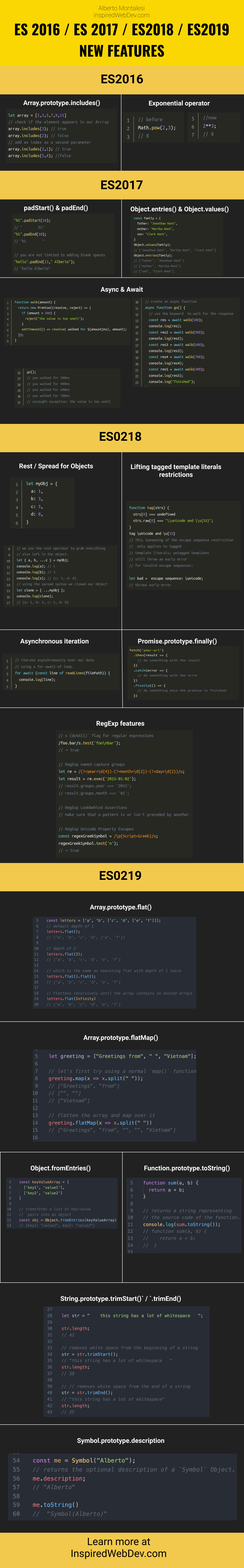 让我们看一下 ECMAScript 最新版本(ES2019)中包含的内容: