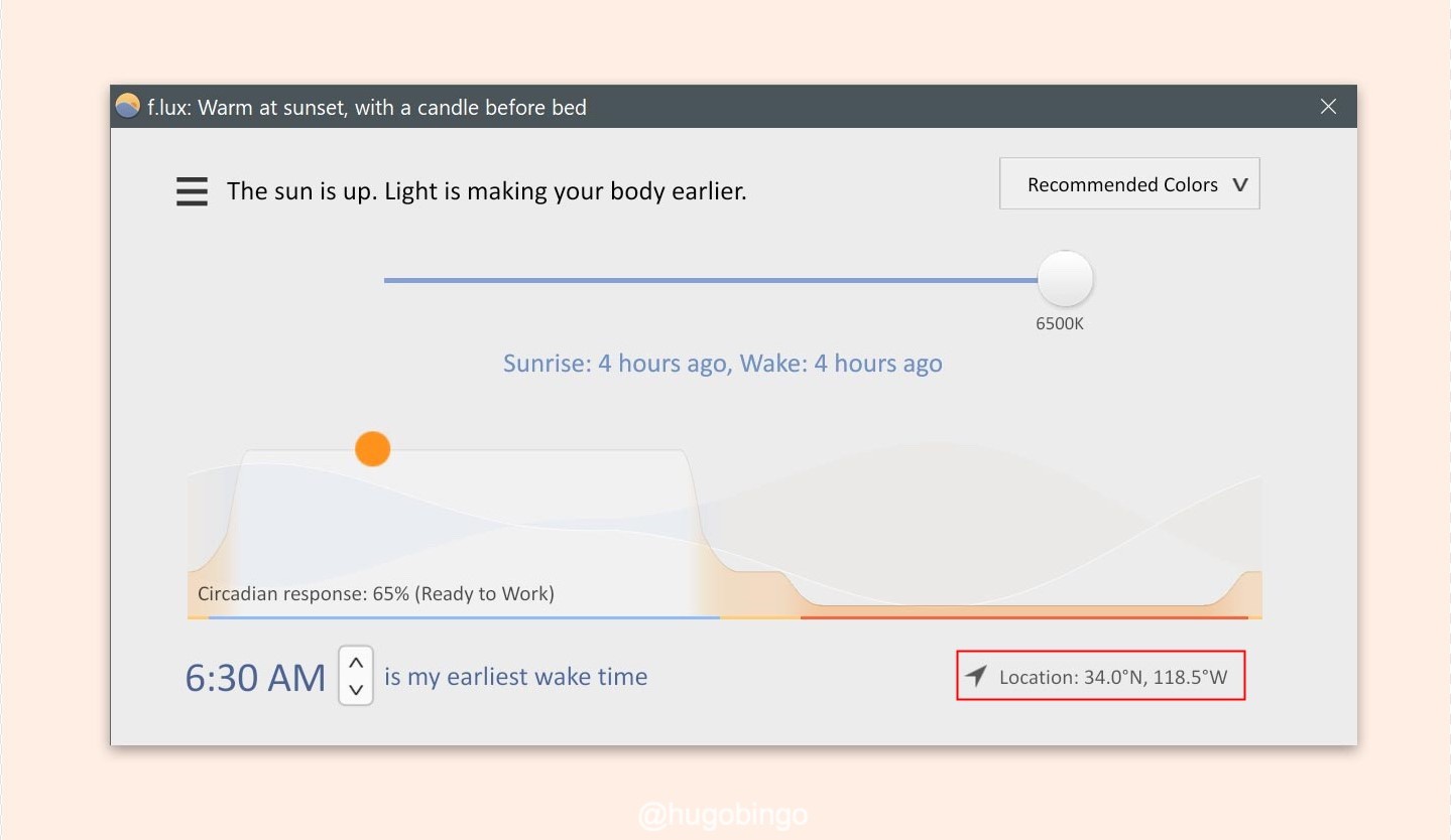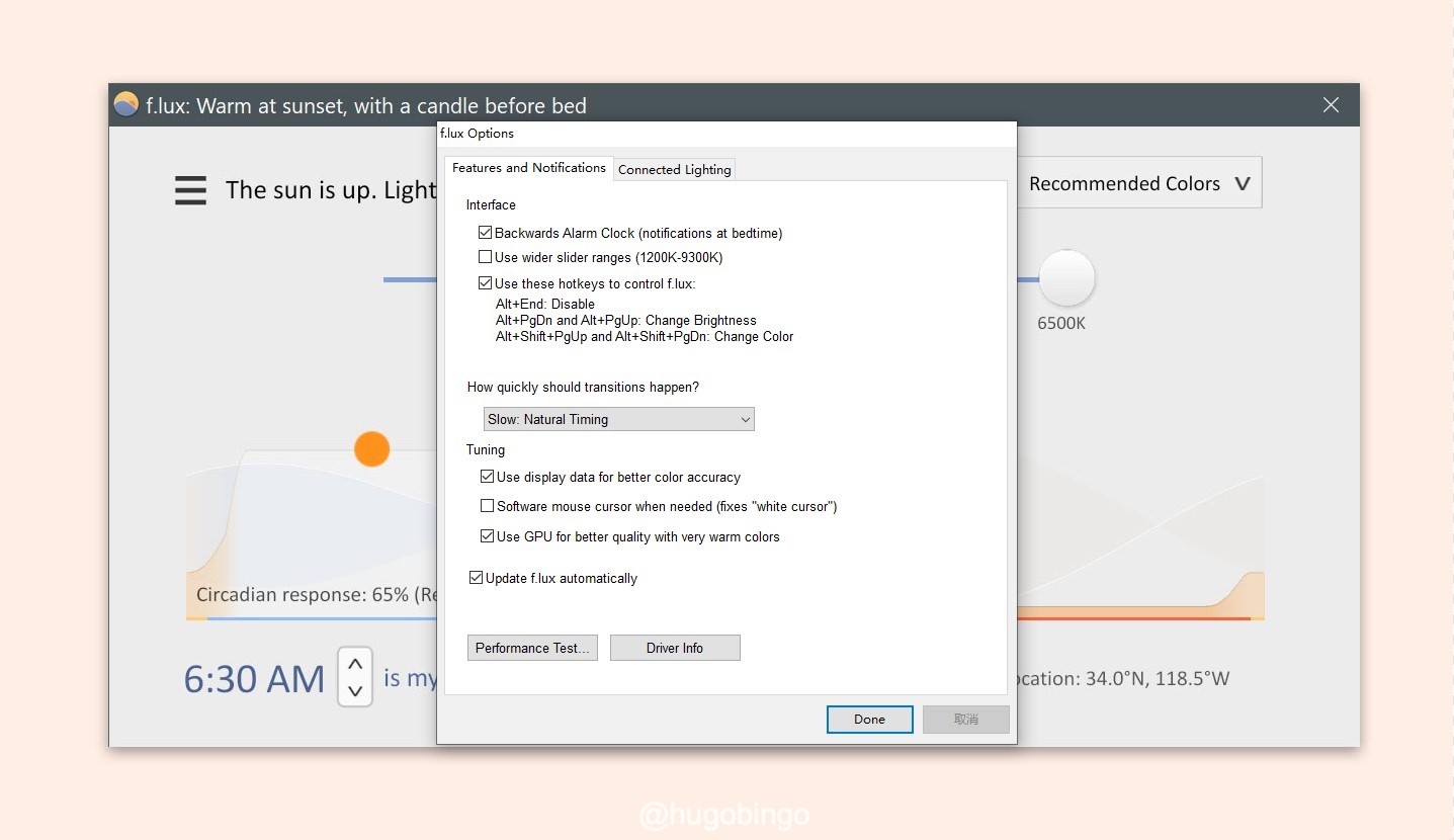在晚上关灯使用手机时,眼睛常常被刺激得泪水直流?或者一大早醒来突发灵感打开电脑准备记录下你梦到的“Big Idea”,却差点被你电脑屏幕光闪瞎眼?这个时候你非常需要一款好的显示器色温调节软件:f.lux 来保护你的双眼。