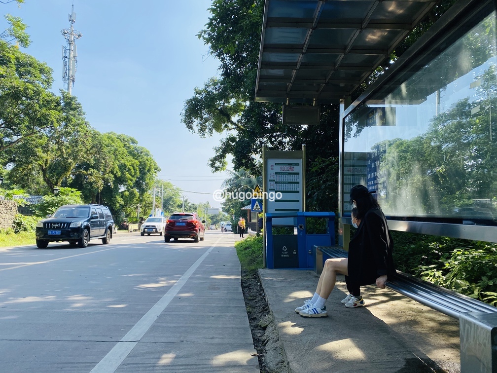 进入景区时需要过一段斑马线到马路对面,见有一座公交站,拍一张。