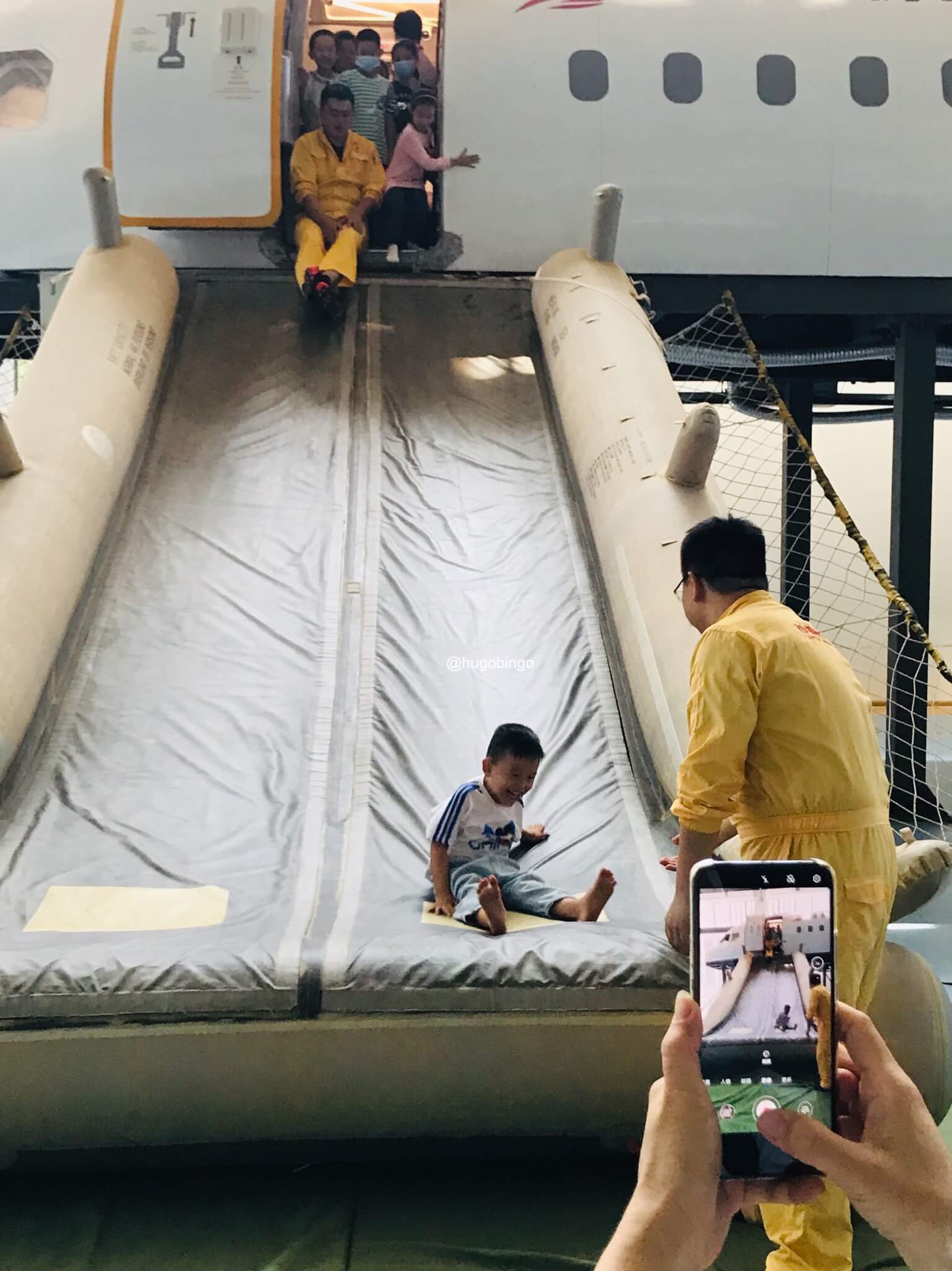 体验逃生滑梯,在外围观察到小朋友们都非常认真听讲,动作也做的标准。不过,小朋友们开心是最重要的,可以滑长长的滑梯。