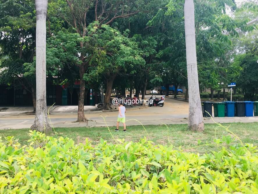 小 A 下车后,到处走走看看,不过,他的好奇心也很快被外面的温度给烧没了,海南的夏天一年比一年热呀。这不,让他给我好好拍一张照片,不配合转身就要走向车里。