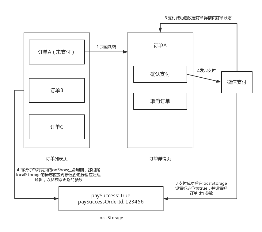 订单列表页在 onLoad 生命周期中订阅 “afterPaySuccess” 事件。