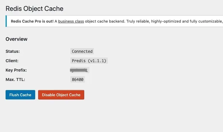 这里我们使用的是 Redis Object Cache 插件来进行缓存加速。