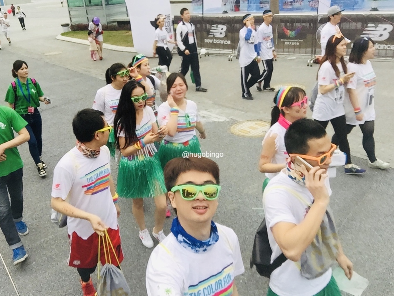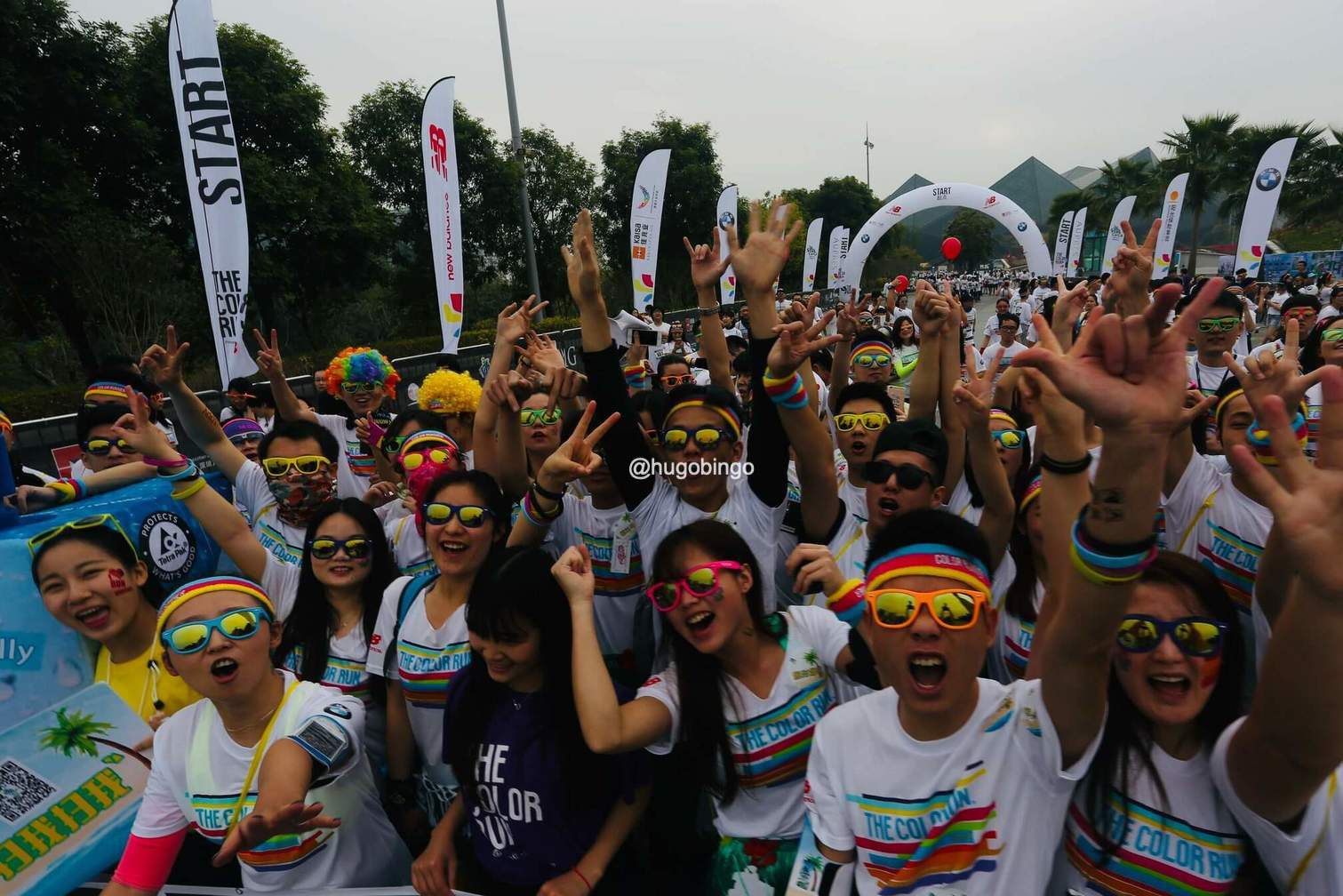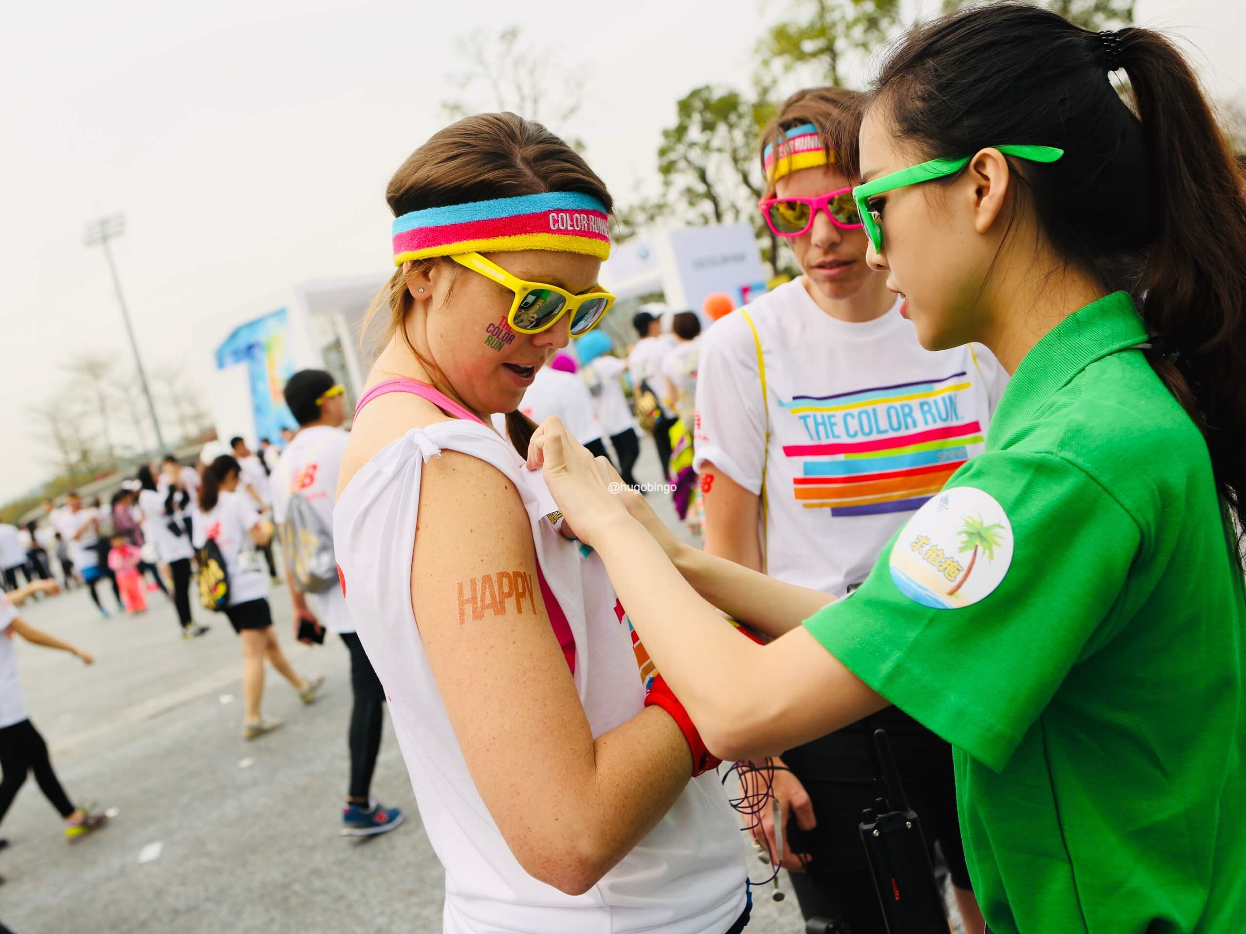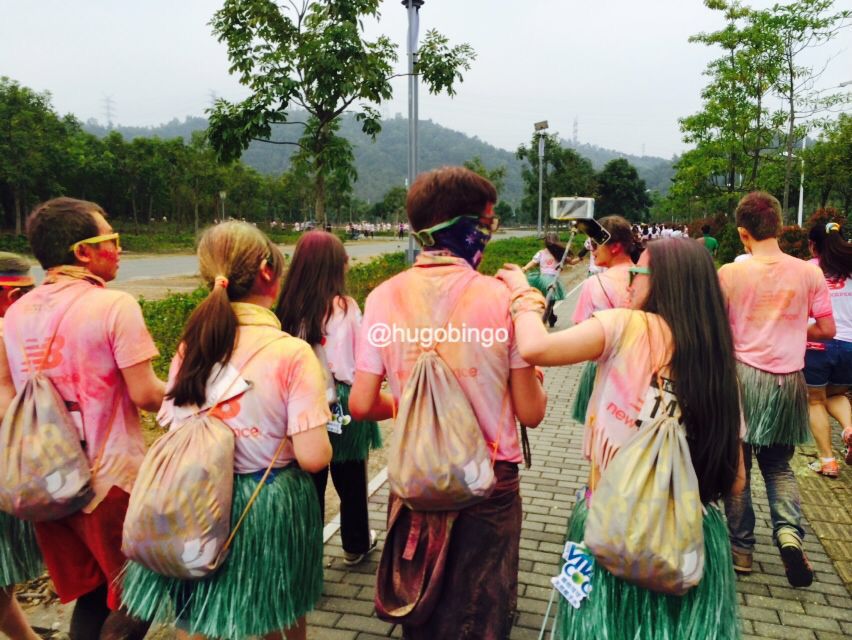 The Color Run:「地球上最欢乐的 5 公里」,是一项 2011 年发源于美国的运动,创办初衷旨是宣传健康、快乐、个性的跑步理念,参加者穿着白色 T 恤 ,跑步过程中经过不同的彩色站,会被从头到脚抛撒无害的玉米彩色粉末。