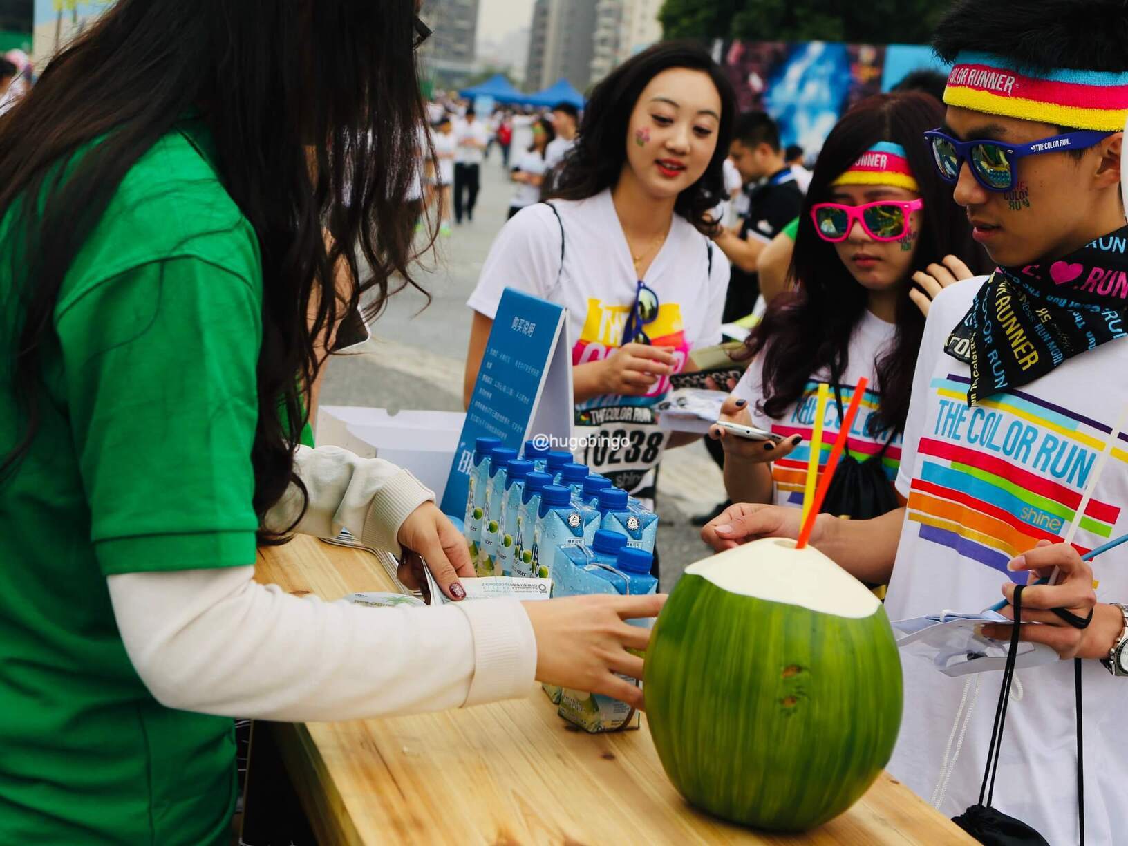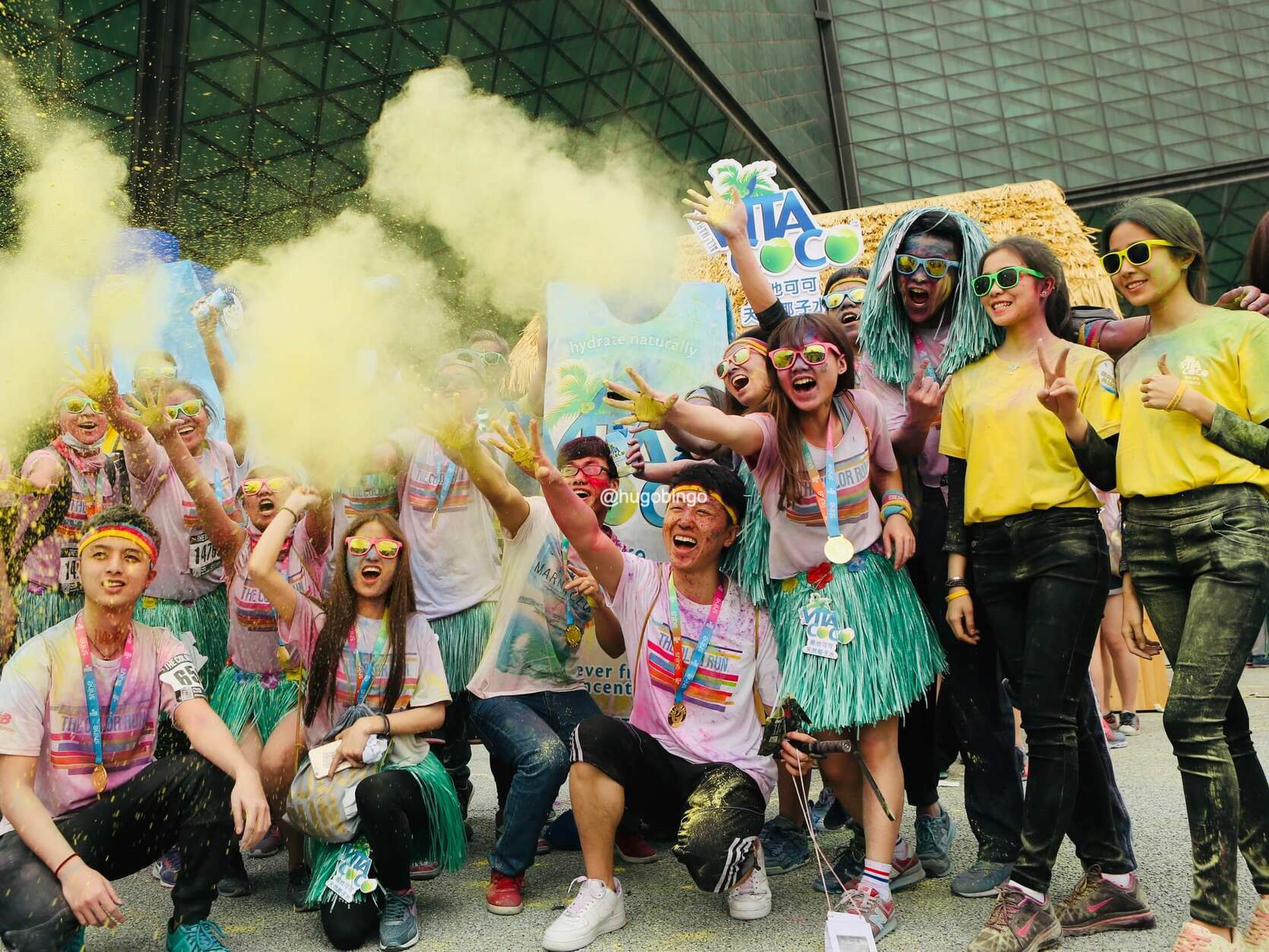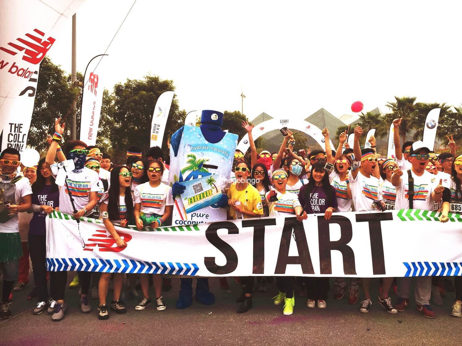 The Color Run:「地球上最欢乐的 5 公里」,是一项 2011 年发源于美国的运动,创办初衷旨是宣传健康、快乐、个性的跑步理念,参加者穿着白色 T 恤 ,跑步过程中经过不同的彩色站,会被从头到脚抛撒无害的玉米彩色粉末。